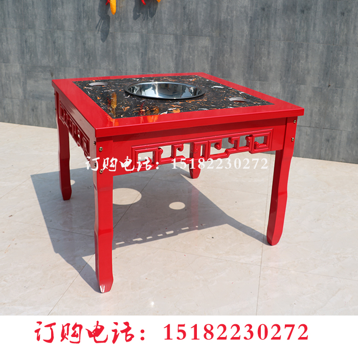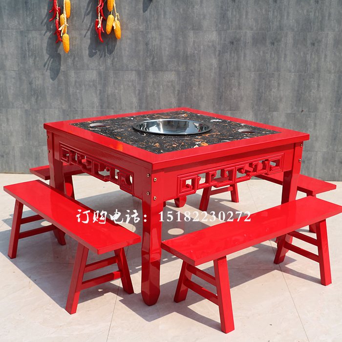 Imitation ancient carved solid wood hotpot table and chair cabinet marble hot pot table hot pot table and chairs