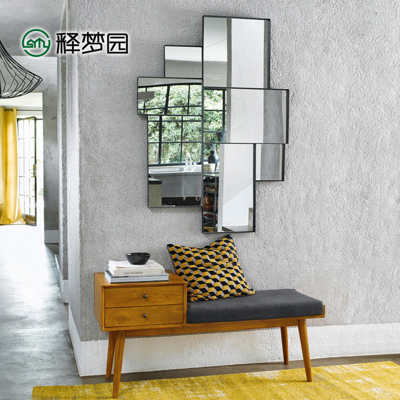 Modern minimalist porch wall hanging mirror combination makeup mirror living room dining room creative background wall decorative mirror 2035