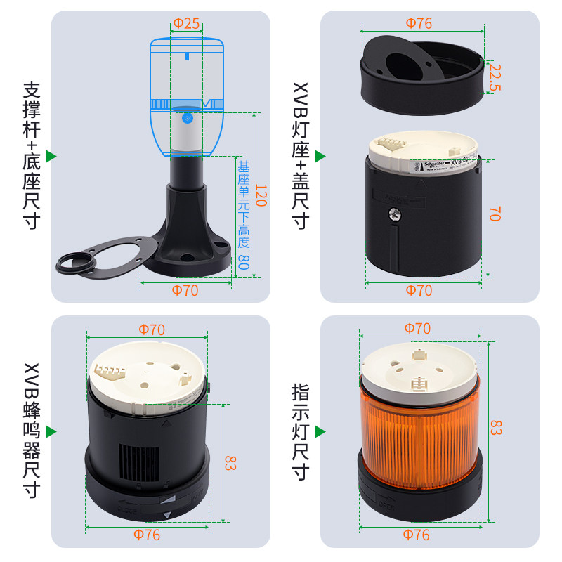 XVB Warning light-Base support tube XVB Warning light-Lamp holder top cover XVB Warning light-Buzzer Green XVB unit signal with LED light layer] Red XVB