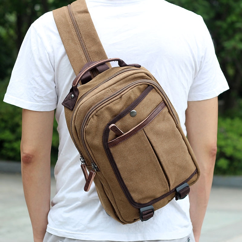 Small Backpack Men's Canvas Mini Small Backpack Dual-purpose Chest Bag Casual Versatile Messenger Bag Messenger Bag New