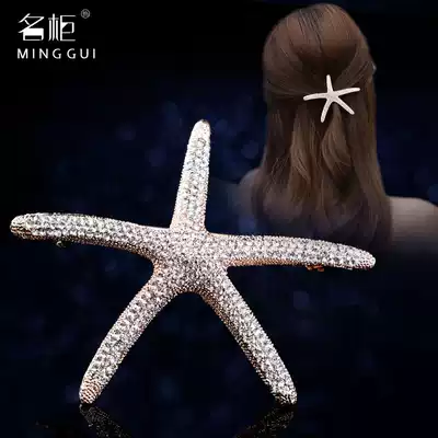 Starfish hairpin Female hairpin Korean rhinestone hairpin hair accessories Elegant hair accessories adult back of the head side clip net red