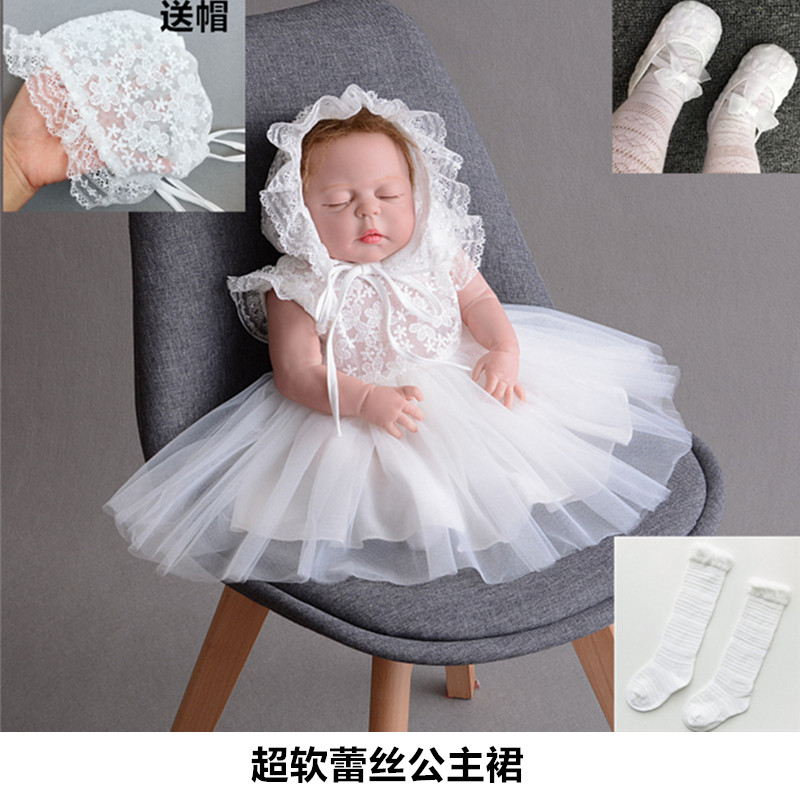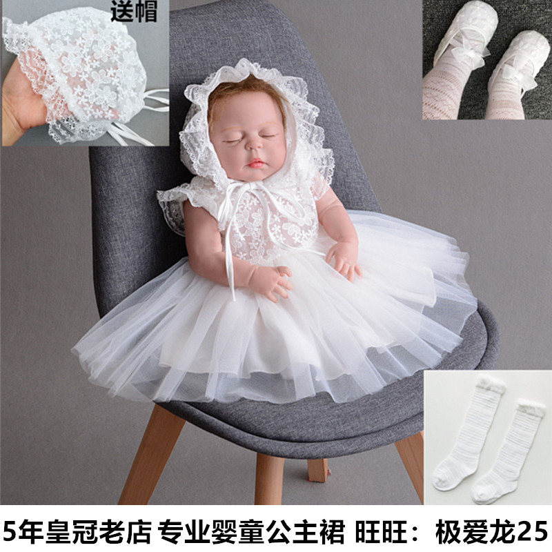 Summer baby dress white woman baby full moon 100 days fluffy dress 2 white yarn dress thin 3 months -1 years old