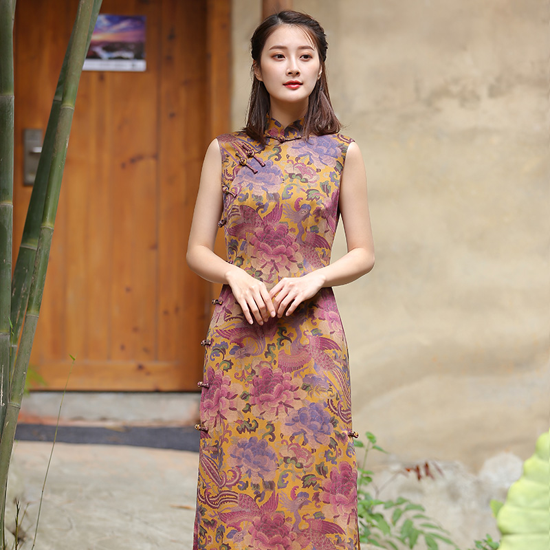 High-end Republic of China improved qipao with sleeveless heavy satin real silk fragrant cloud yarn retro custom gown mulberry silk foreign dress