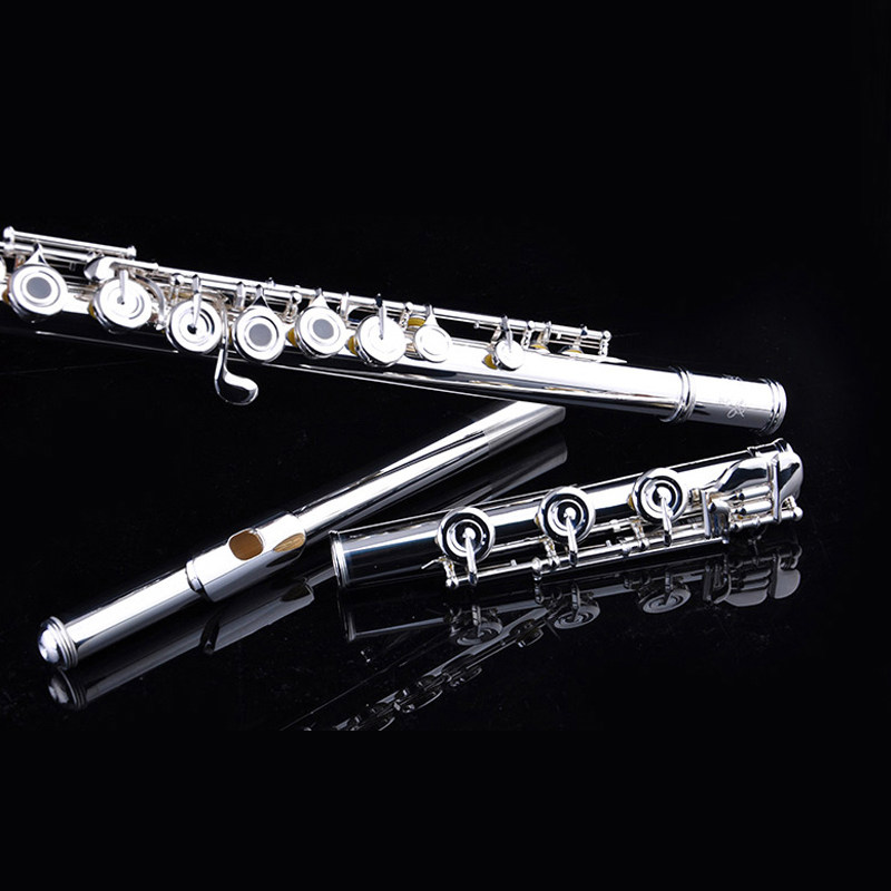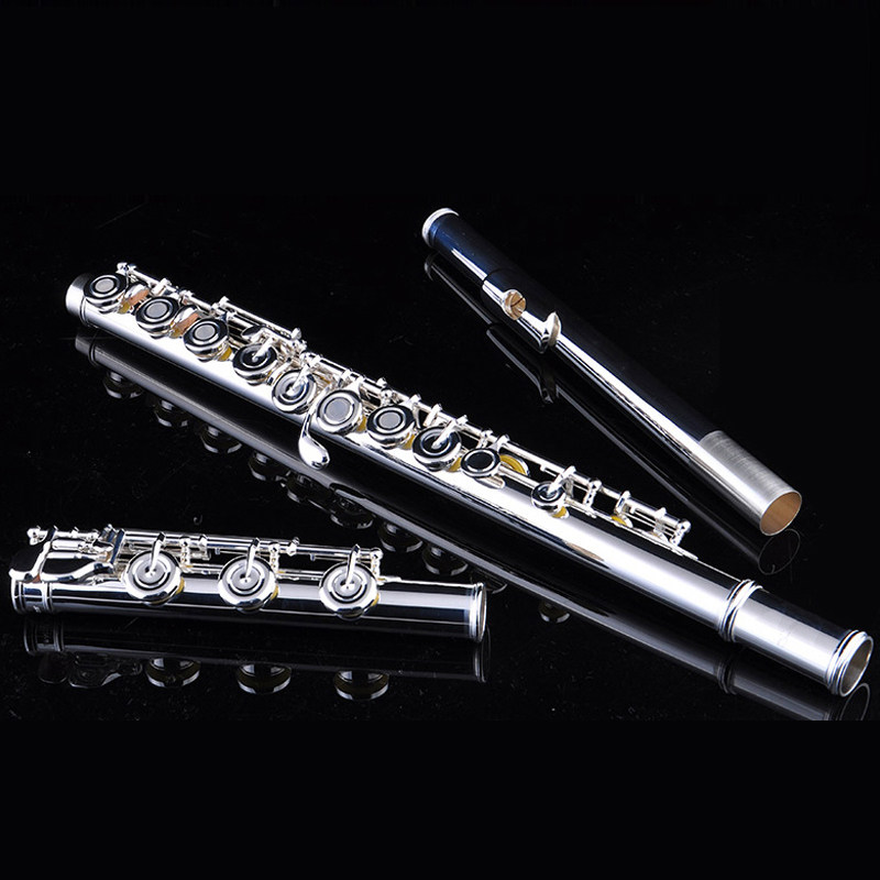 Emery long flute 17 open and closed hole B tail instrument white brass silver plated long flute beginner professional test for professional examination