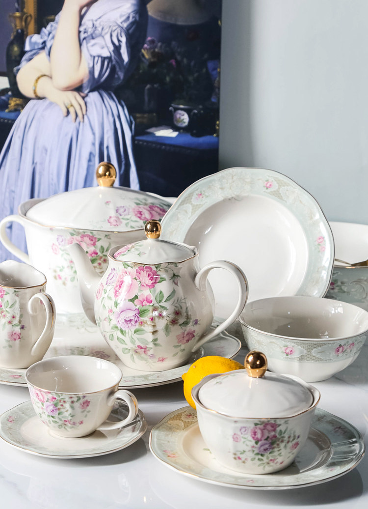 Lovely French Court Style Girl Feeling Retro Blue Bone China Plate Plate Bowl Soup Pot