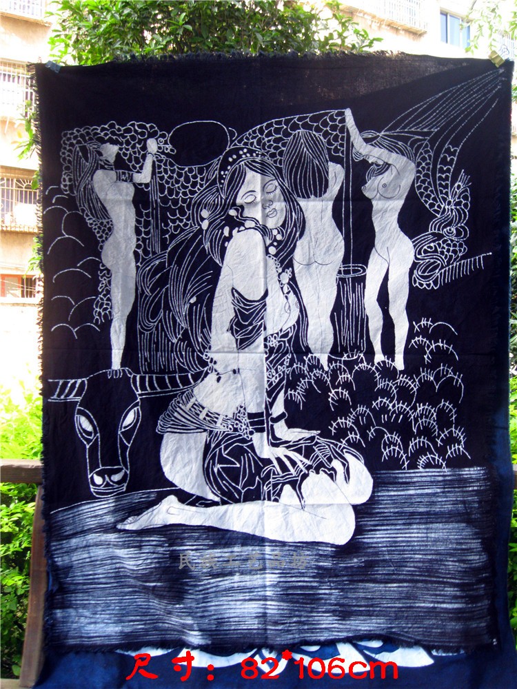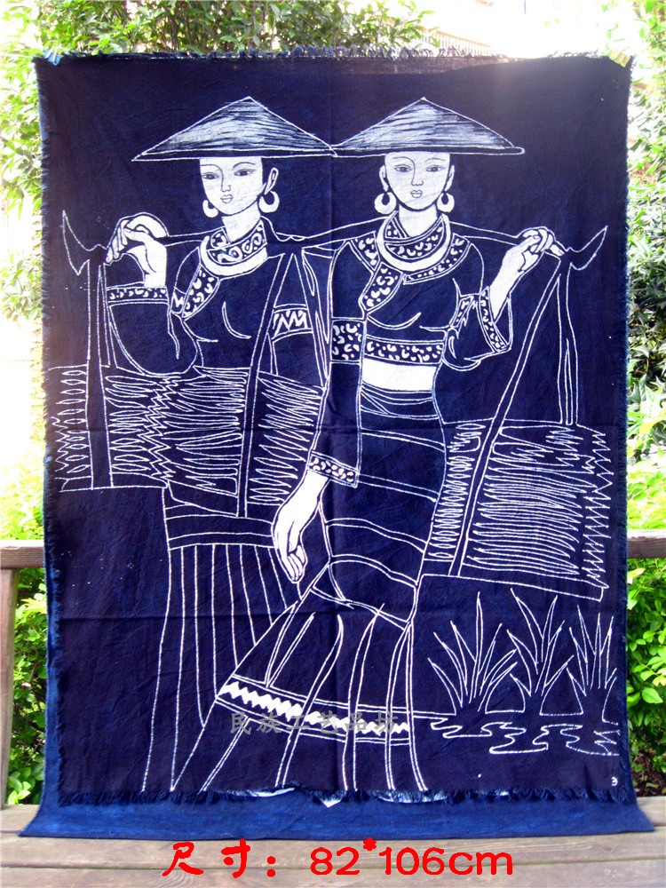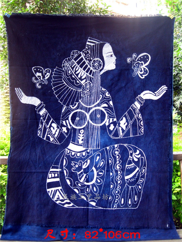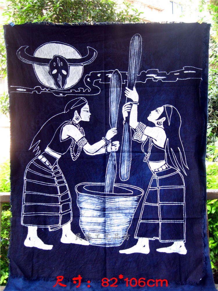 New Hot Pin Guizhou Miao Wax Dyeing And Painting Hanging Bu Ethnic Wind Pure Cotton Cloth Home Bar Dining Room Decoration Gift