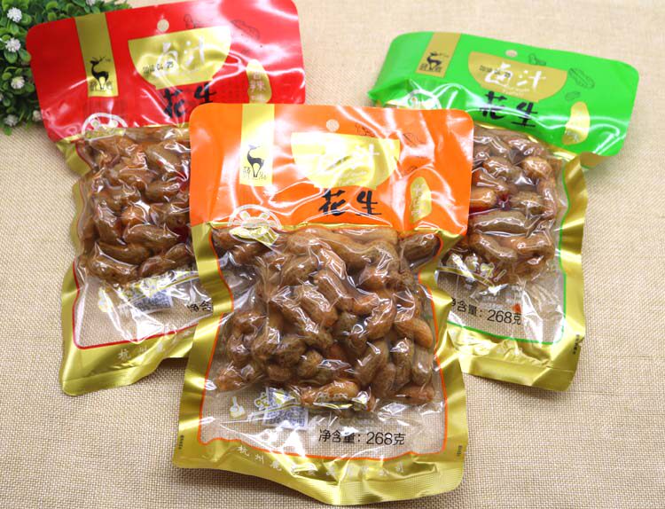 Cute Deer 268g Halogen Juice Peanut 3 Bags Sesame Spicy with shell Water cooking Peanuts Snacks Whole Box 40 Packs Up