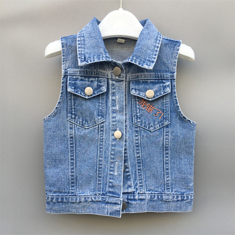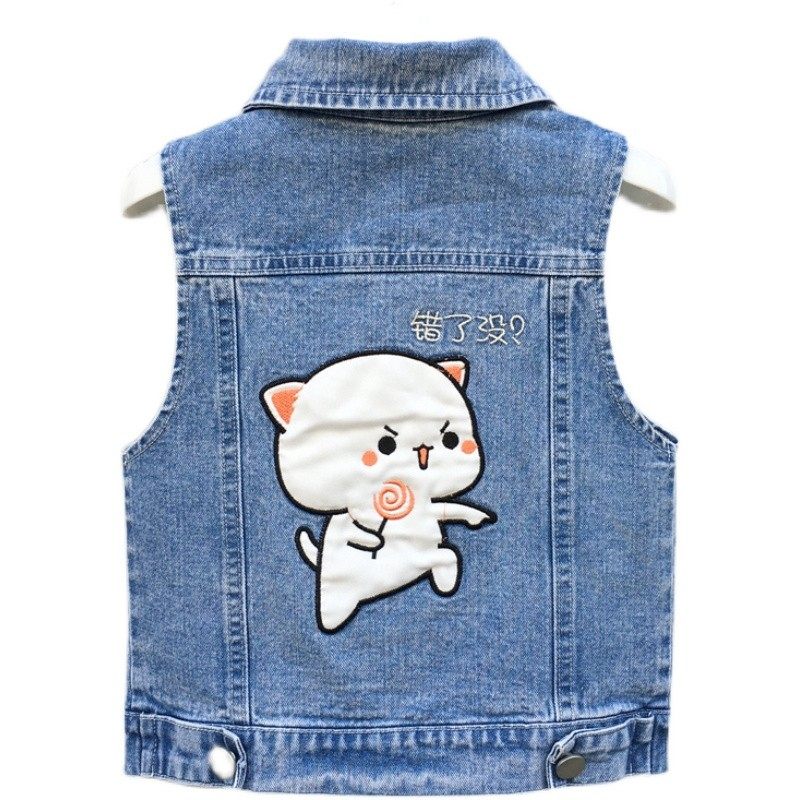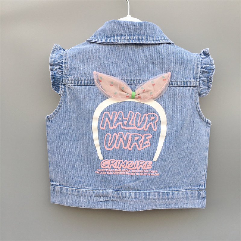 Girl Cowboy Waistcoat 2022 New Little Boy Baby Spring Autumn Season Monolayer Kitty Cute Kan Shoulder Vest Korean version