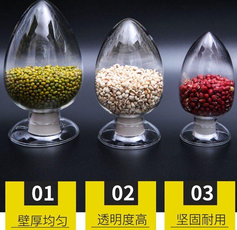 Hua Ou brand conical chicken heart bottle 125 250 500ml glass seed bottle Sample bottle display bottle Crystal powder display bottle Transparent glass bottle with rubber stopper Laboratory