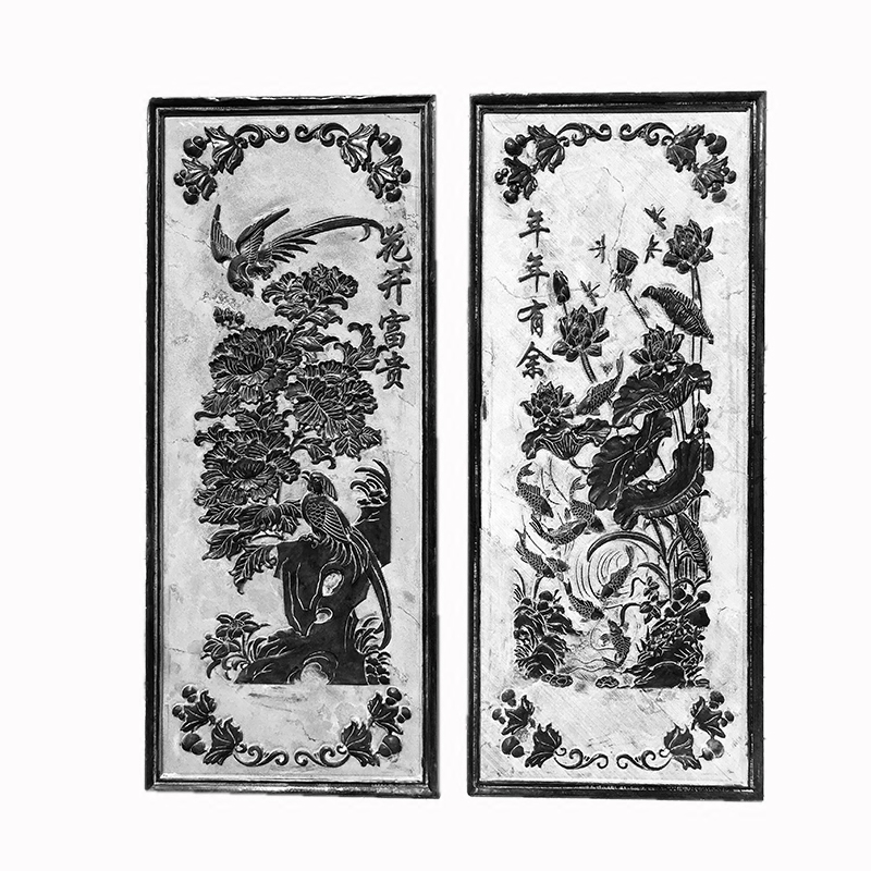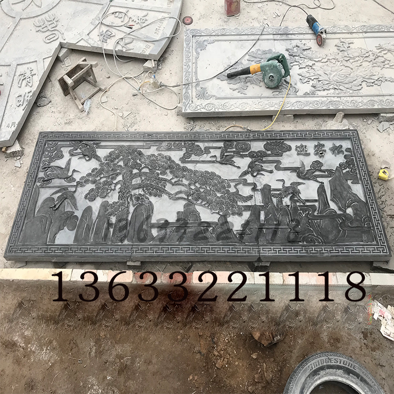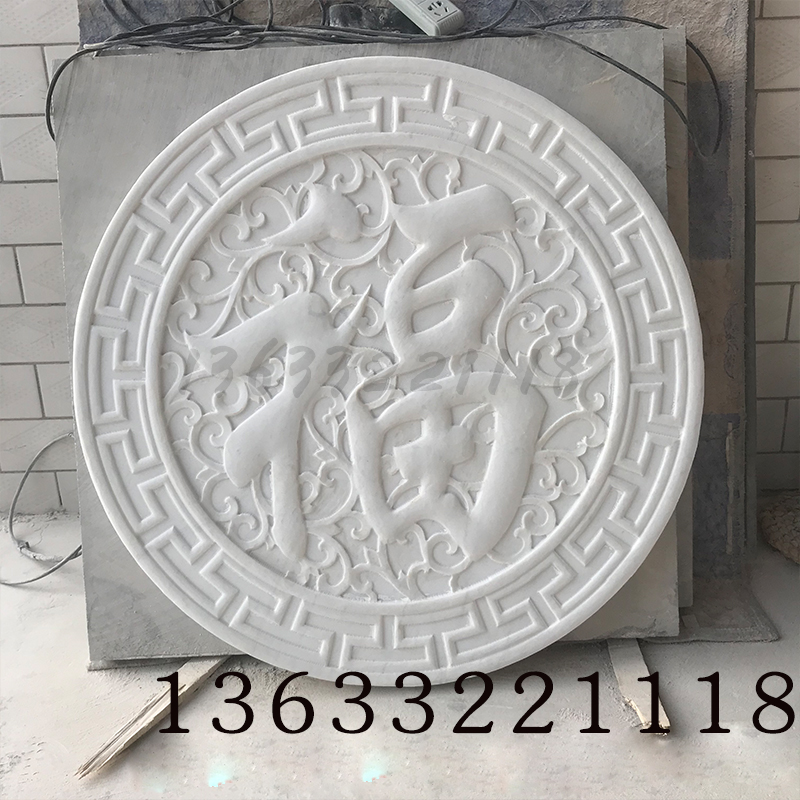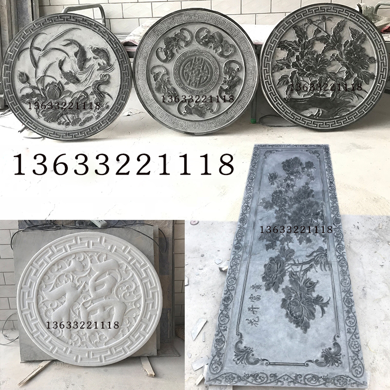 Green Stone Floating Engraving Peony Flowers Xuanguan Courtyard Fish Leaping Gantry Fu Character Greeting Guests Songzhao Mural Grand Marble Gate Plaque