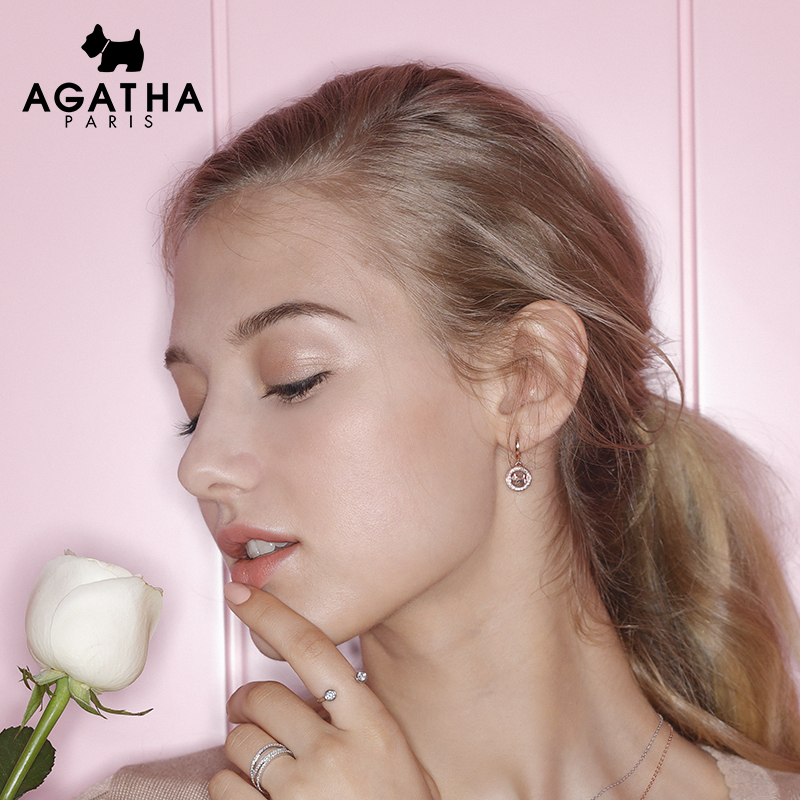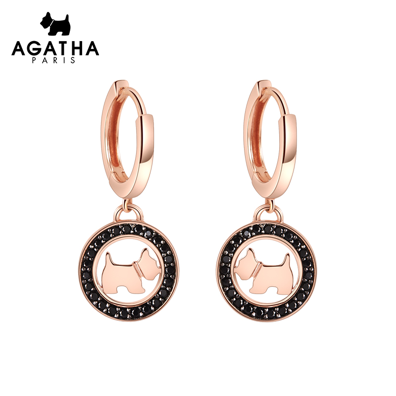 AGATHA 925 silver round shiny stone pendant puppy cute minimalist temperament ear pin