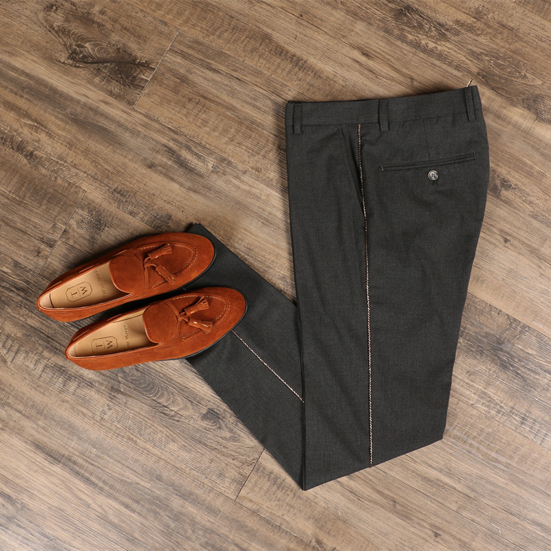 IsirHonour Europe and America big dark gray gold side menu pants English retro casual trousers
