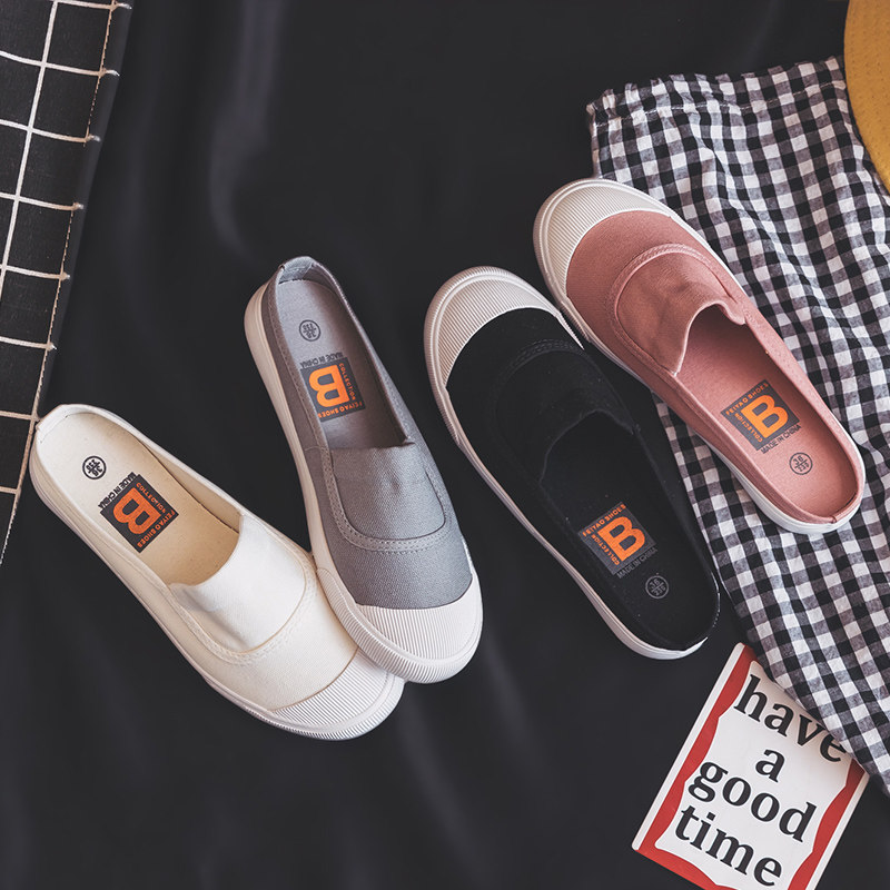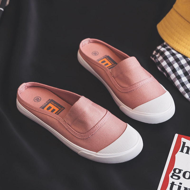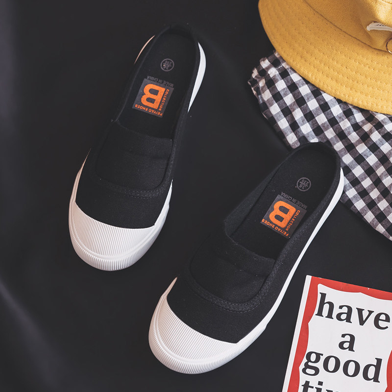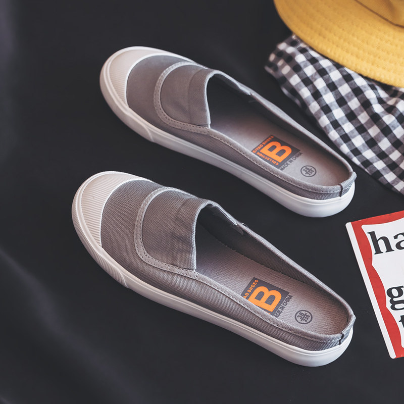 Half-trail canvas shoes female students without heel 2022 autumn new Korean version all-match lazy slip-on small white shoes trend