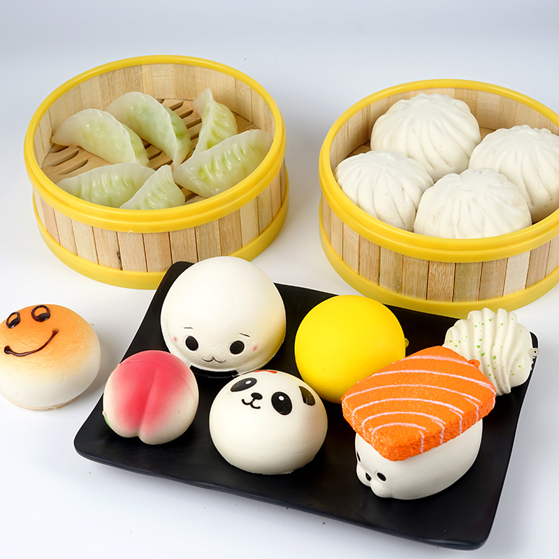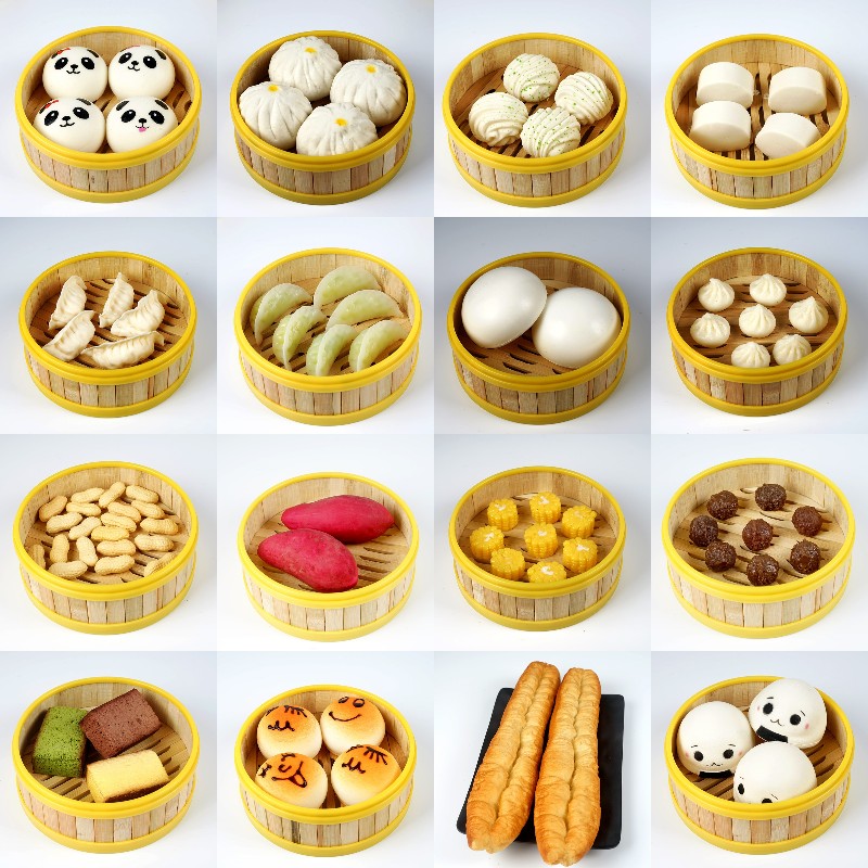 Cyan mix bag set of small water dumplings a set of steamed stuffed buns a set of panda bags a set of raw meat packs a set of milk yellow bags a set of bean sandbags a set of flower rolls a set of small omelets a set of egg tarts a set of sushi