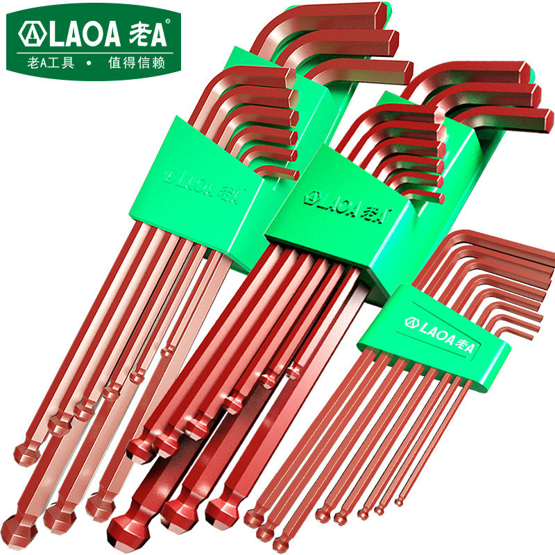 Old A inner hexagon wrench S2 material lengthened Changlong ball head flat head inner hexagon wrench with magnetism