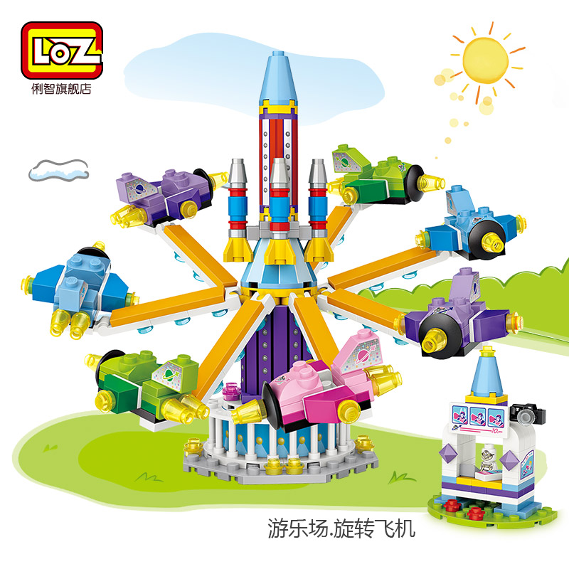 LOZ Lizhi mini playground Small particles building blocks Children's toys For boys and girls Street view Ferris wheel clip doll machine 6 years old