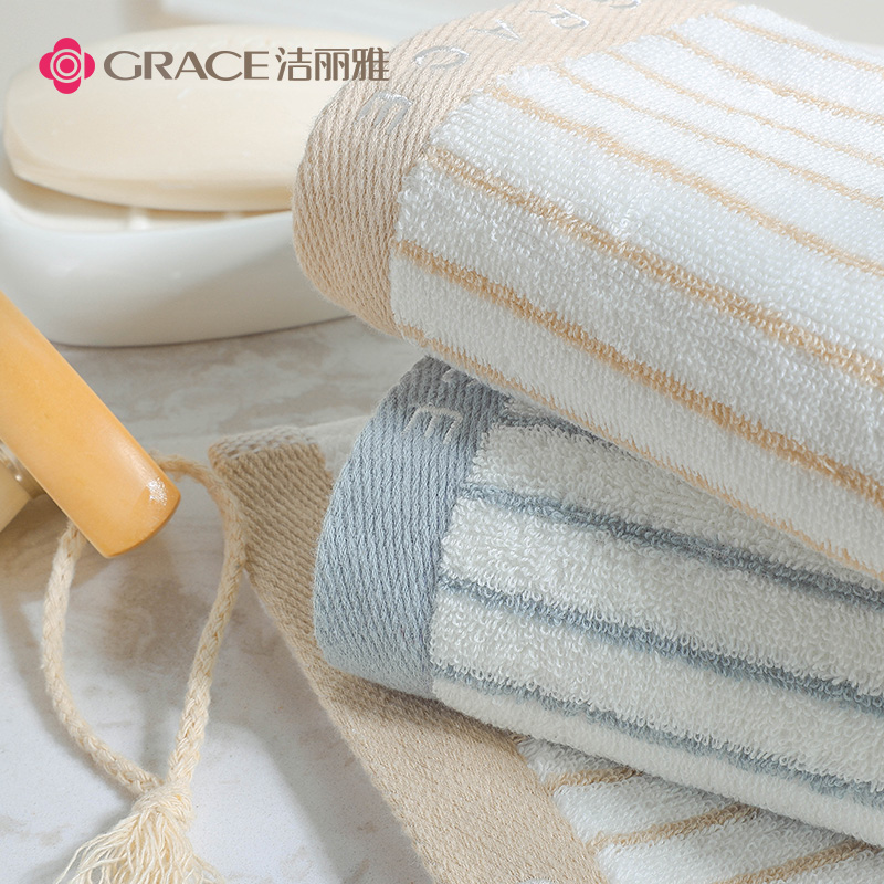 Lilly towel pure cotton vegetarian color striped wash face Domestic adult male and female soft absorbent towel 2 strips-Taobao
