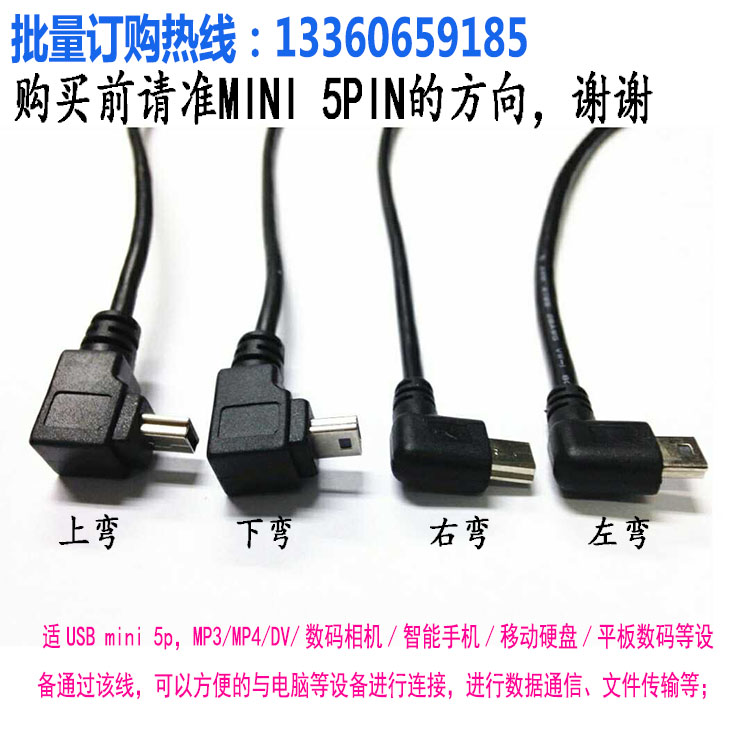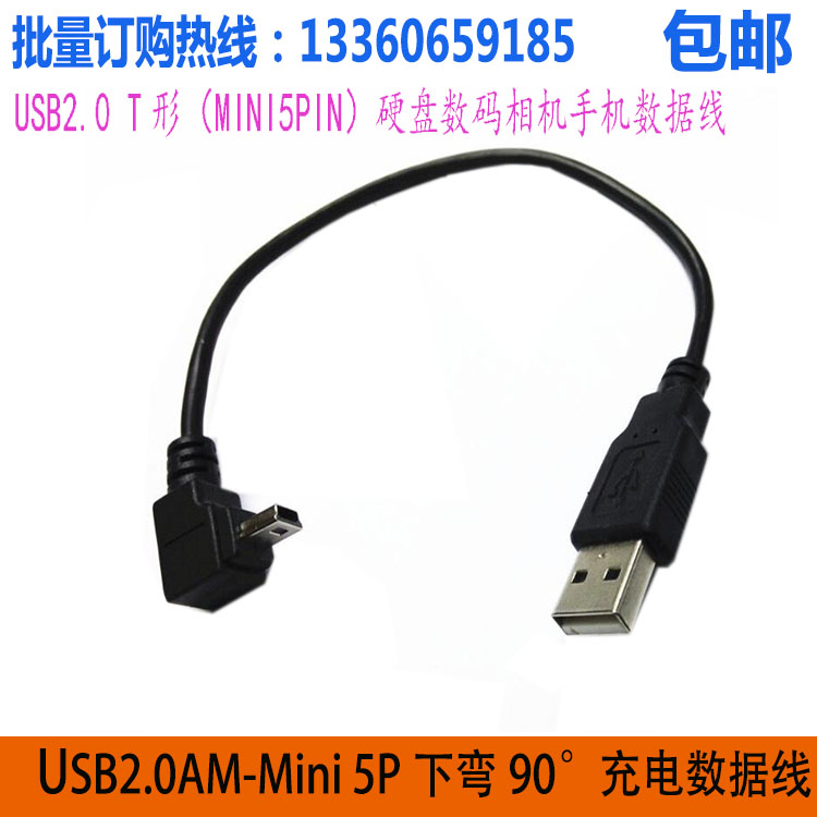 AM-Mini 5P90 degree right bend USB2 0 hard disk digital camera mobile phone data line T mouth