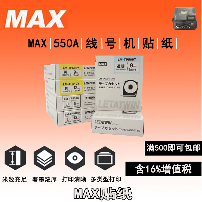 MAX LETATWIN Line Number Machine LM-550A LM-550E LM-550E LM-TP509W 9mm Label photocopy paper barcode sticker 16 meter Line Number