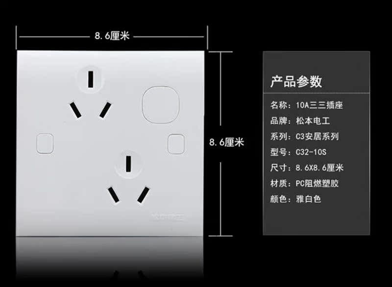 Matsumoto C3 series old 86 type 10A three - eye six - hole socket six - eye socket microwave oven socket panel