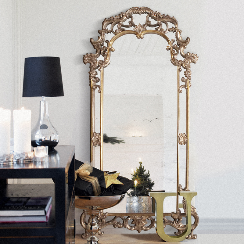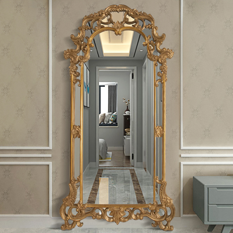Cloakroom fitting full-length mirror European and American villa carved landing Full-length mirror Hanging by the wall Floor-to-ceiling mirror customization