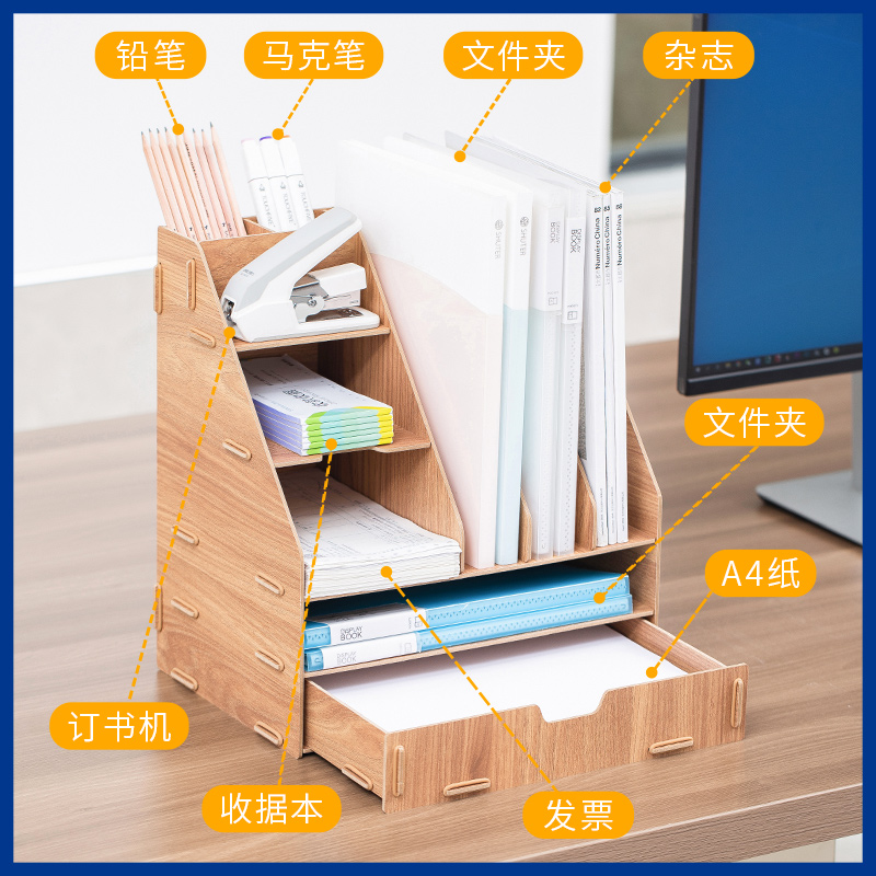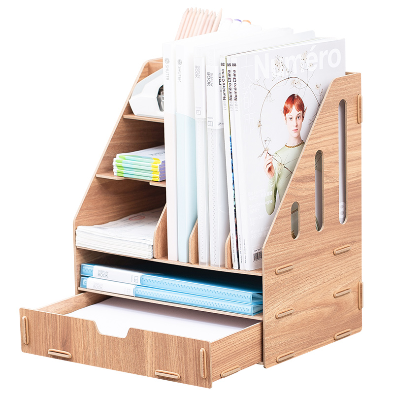 Multi-function file rack Bookshelf Desk file frame data rack Wooden office supplies File storage layer rack shelf Book stand ins wind desktop file box Creative drawer-style multi-layer file rack