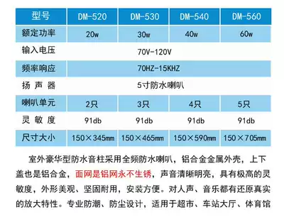 Wall-mounted audio outdoor outdoor waterproof sound column Campus workshop speaker Public broadcasting system speaker 20w-60w
