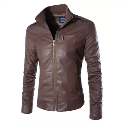 Spring and autumn new foreign trade brand men's leather clothing European and American motorcycle leather jacket trend stand-up collar pu leather jacket men