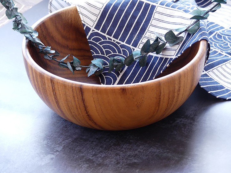 Wooden bowl Acacia wood oversize whole wood bowl 25CM big bowl hotel household and noodle wooden basin wooden bowl