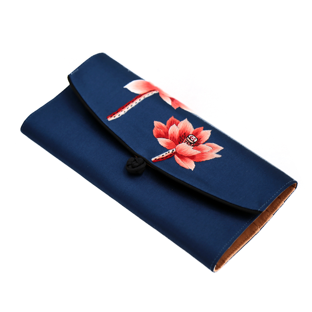 Shu embroidery hand embroidery lotus mulberry silk wallet Chengdu special gifts to foreigners to send mother Chinese style gifts