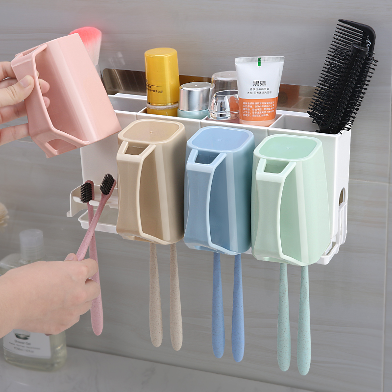 Suction wall toothbrush holder Wall-mounted powder room creative mouthwash cup Free hole toothbrush cup set Brushing cup holder