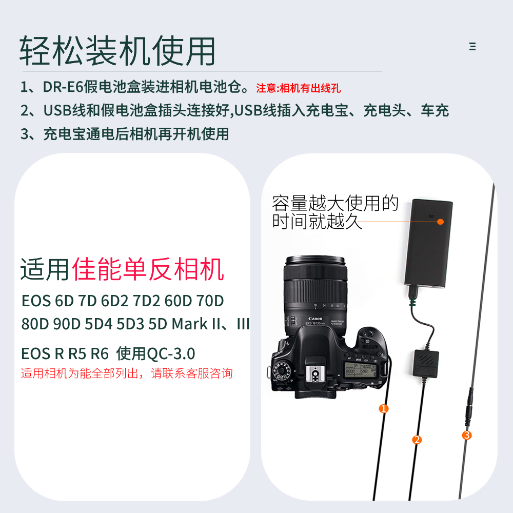 Zhenfa Canon EOS 5D4 3 6D2 6D2 7D2 90D 90D-eye 60D 60D 70D 80D 80D power supply connector LP-E6 fake battery case R5