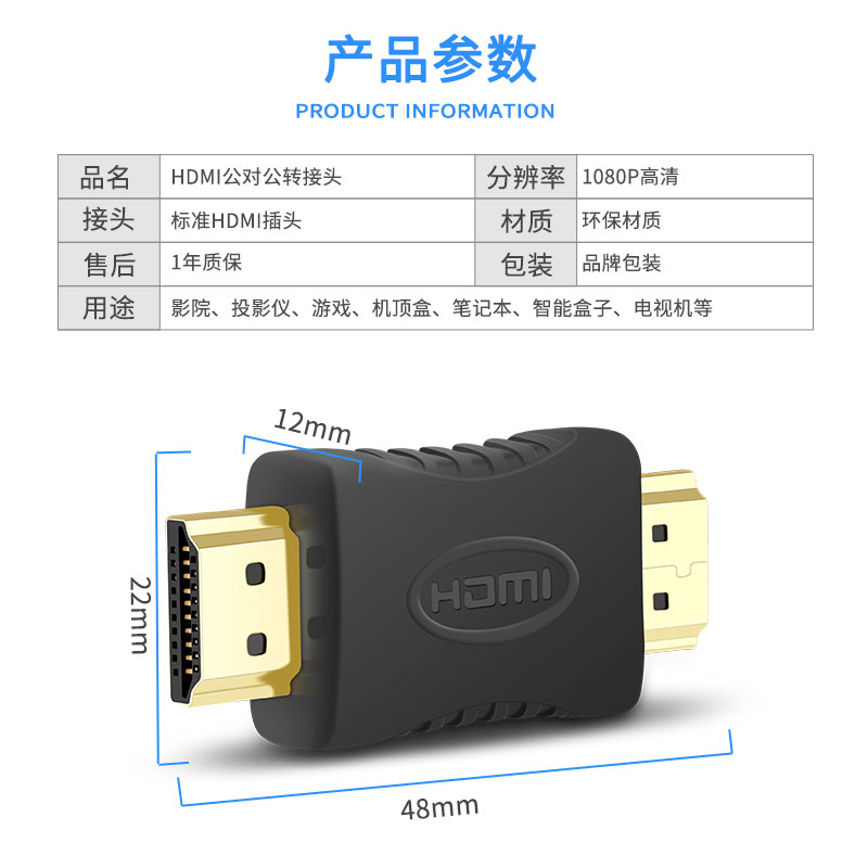 Computer TV HDMI adapter male-to-male straight-through head extension head hdmi high-definition line video connection conversion head