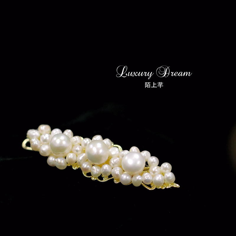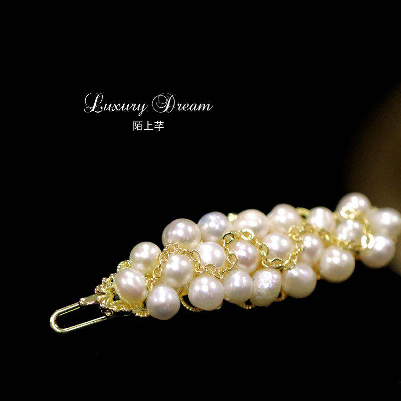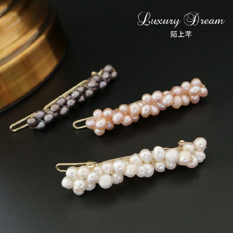 One-word clip headgear Korea Simple natural freshwater pearl half-tie hairpin bangs clip headgear