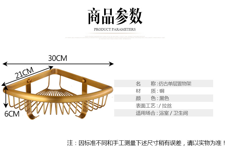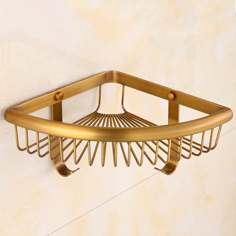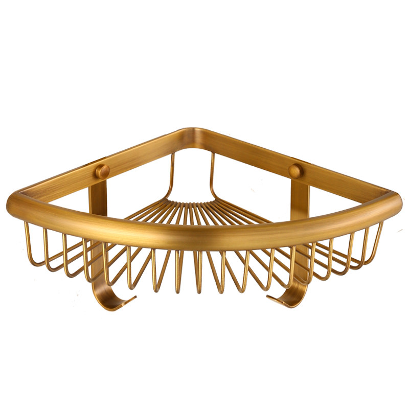 Copper-European-Style Antique Shelf Bathroom Cosmetic containing layer rack with hook mesh basket angular rack thickened monolayer tripod