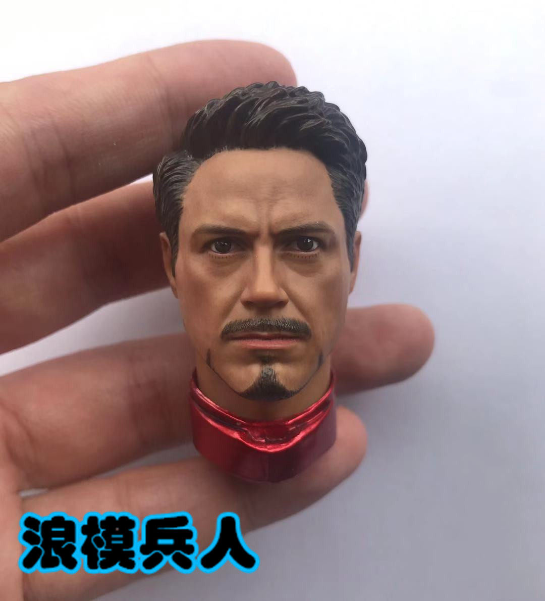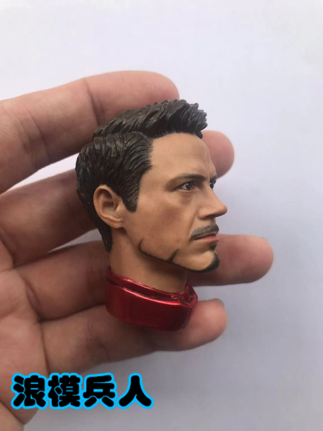 Soldiers 1 6 Iron Man Tony head carving new hairstyle suitable for HT MK double connector neck sleeve spot