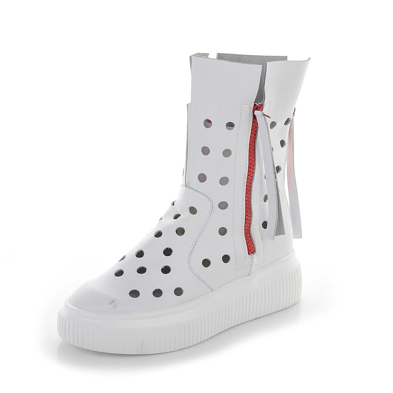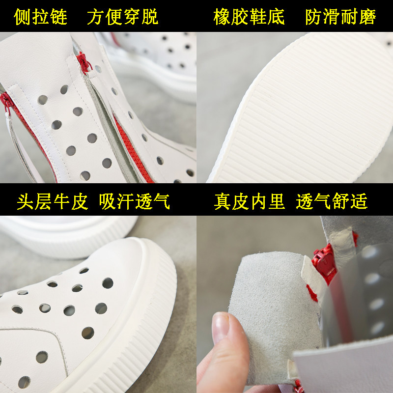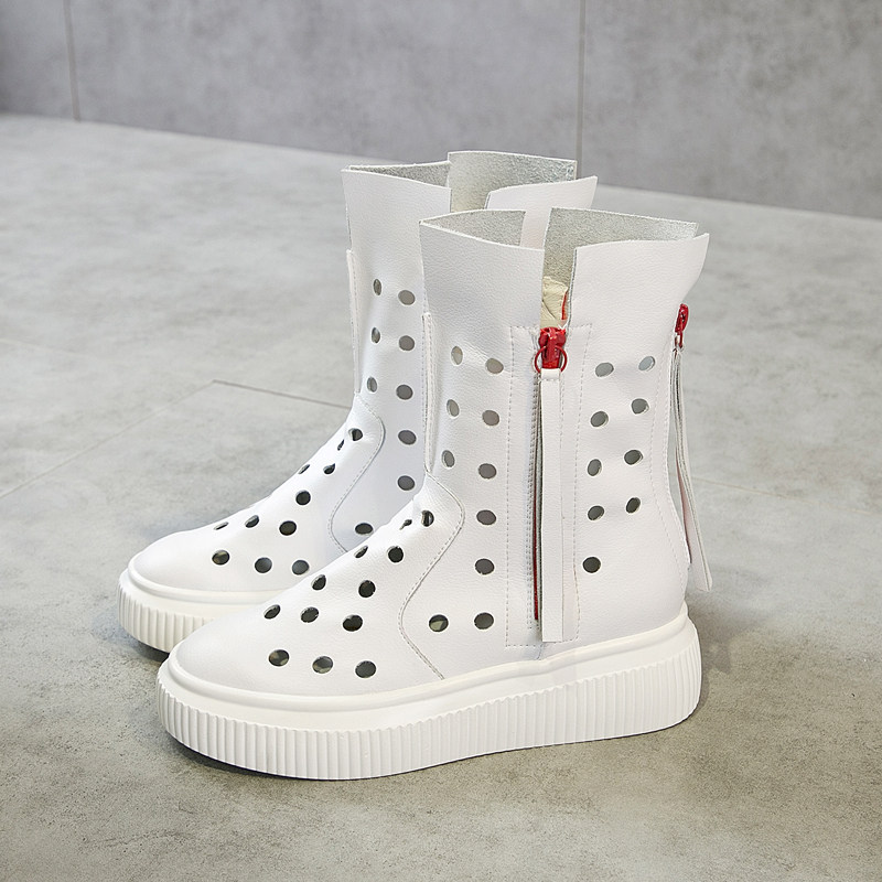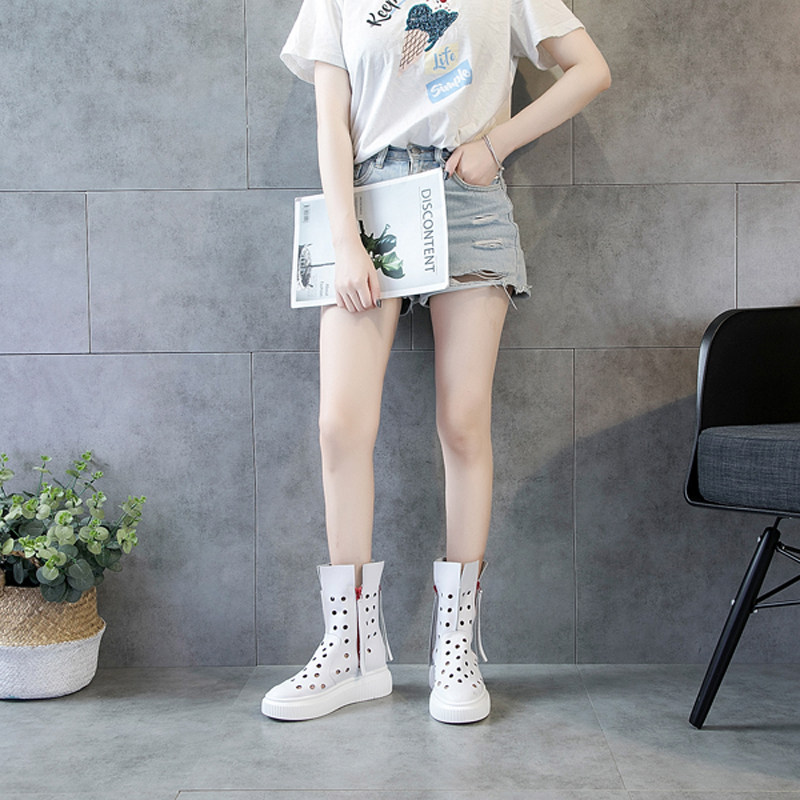 White short boots women's summer 2022 new breathable leather hollow women's boots sponge cake thick-soled cool boots Martin boots mesh boots