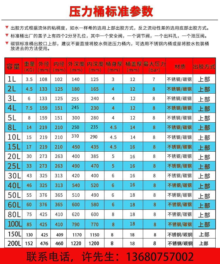 Stainless steel water storage pressure barrel lower glue pressure tank glue automatic dispensing water storage pressure barrel can be customized pressure vessel