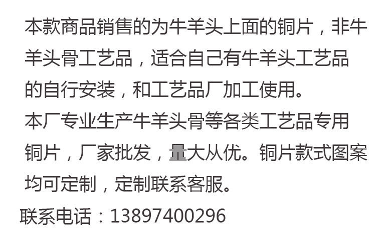 Sheep's head copper sheet brass sheep's head copper sheet retro bull head copper sheet brass style one bull head copper sheet retro style one bull head copper sheet brass style two bull head copper sheet retro style two bull head copper sheet brass style three bull head copper sheet retro style three separate wrapped horn two pieces of horn two pieces of sheep's head brass style 10 sets of sheep's head brass style 20 sets of sheep's head retro style 10 sets of sheep's head retro style 20 sets of bull's head brass style 10 sets of bull's head retro style 10 sets of bull's head retro style 10 sets