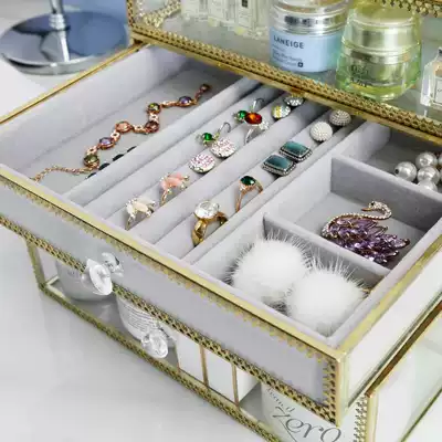Glass single layer jewelry jewelry box earrings ring hand bracelet necklace headwear jewelry storage box finishing box