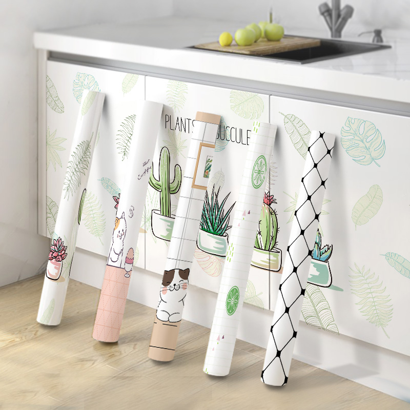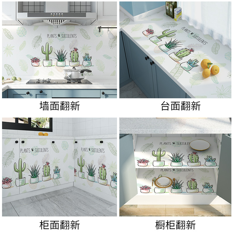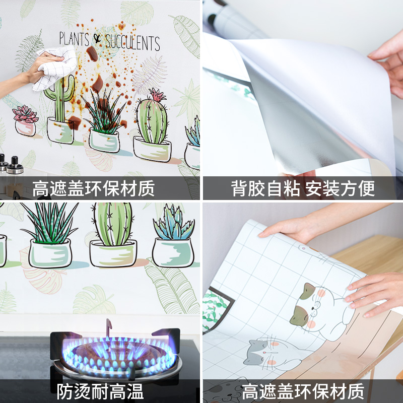 Kitchen household anti-fume stickers High temperature resistant self-adhesive cabinets and tables with oil-proof tiles Waterproof thickened wall stickers wallpaper