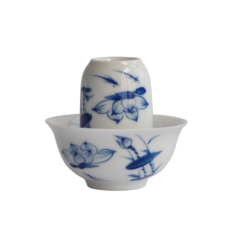 Jingdezhen ceramic incense cup Hand-painted Kung Fu tea set Smell tea incense tea solid wood tray Tea cup single