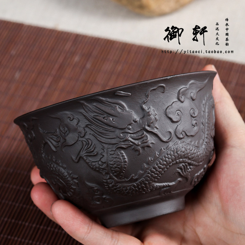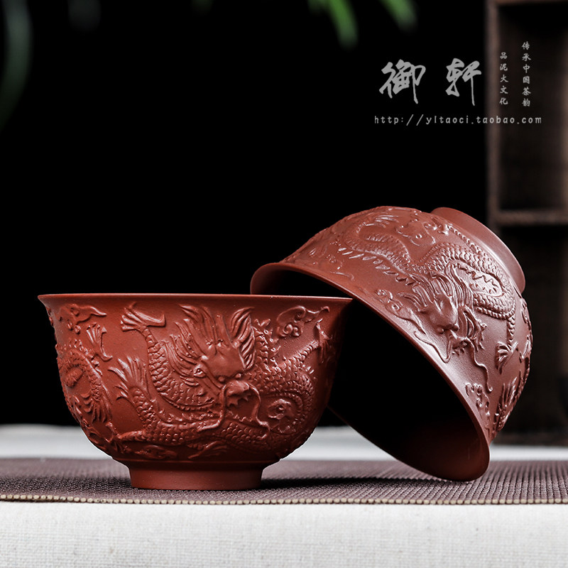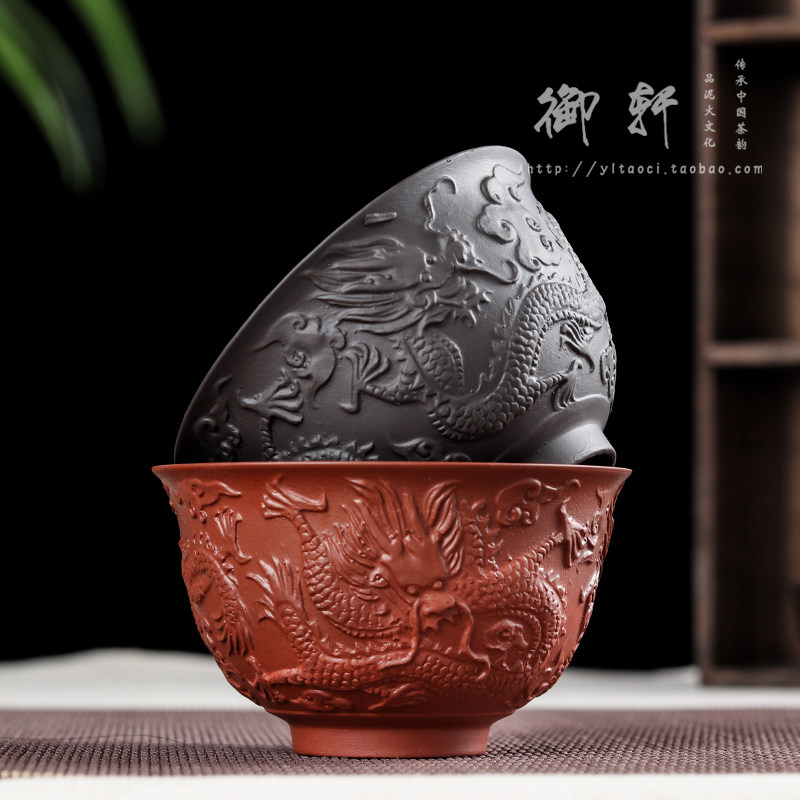 Yixing purple sand relief teacup Zhu cup cup large mouth full hand original original cup single cup owner cup