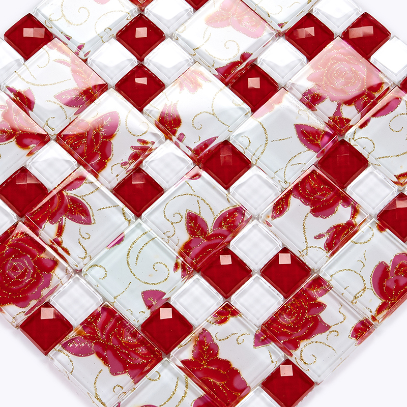 (Fallisa) mosaic crystal glass red European-style tile TV background wall Living room counter KTV