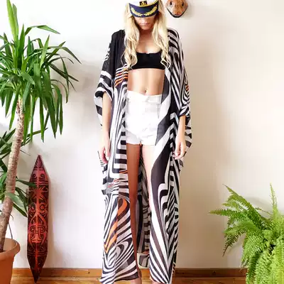 Chiffon printed cardigan Triangle pattern cardigan Zebra pattern Chiffon cardigan black and white wave lace blouse small floral Chiffon cardigan