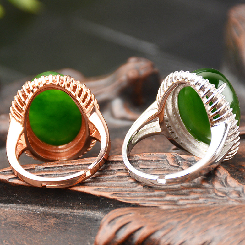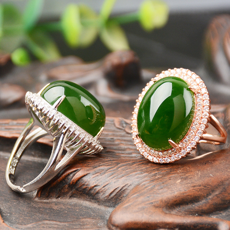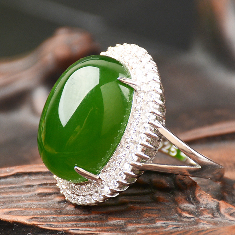 Hotan jasper ring 13x 18mm ring face women's large ring 925 silver double ring inlaid with white stone jasper ring
