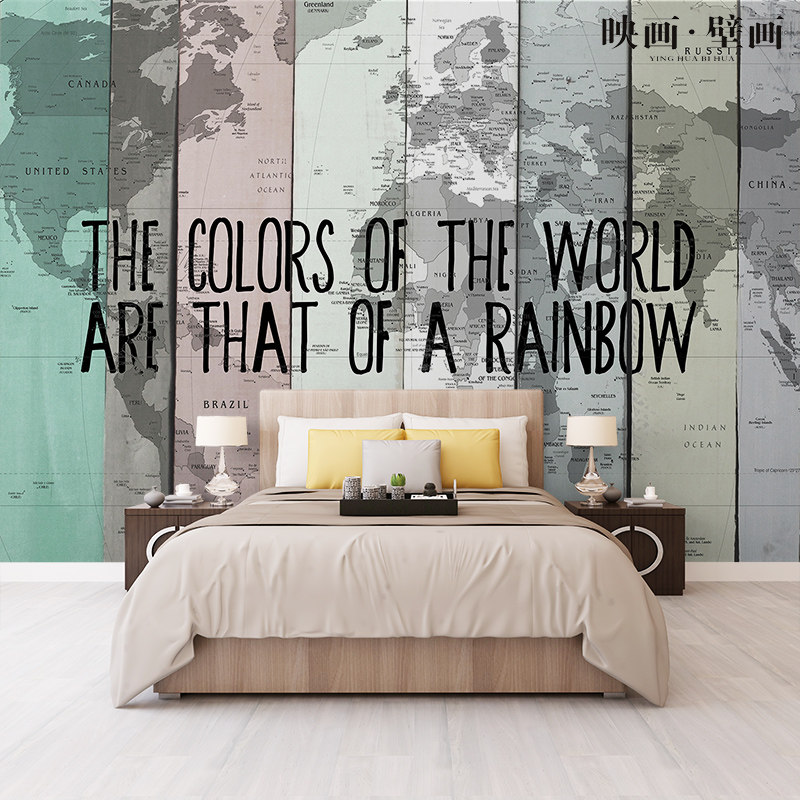 Nordic hand-painted abstract world landmark map retro living room TV background wallpaper seamless sofa wallpaper mural canvas