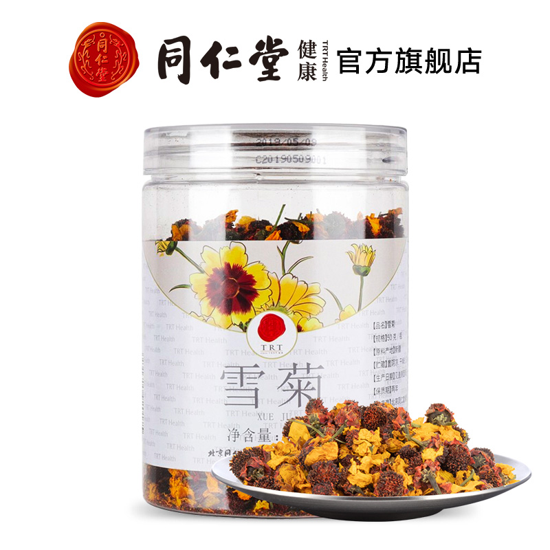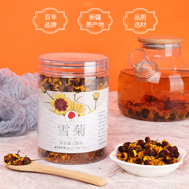 Beijing Tongrentang Xueju Road Country of origin Xinjiang Tianshan Xueju 50g canned flower tea Non-clenbulitian Chrysanthemum Tribute Chrysanthemum