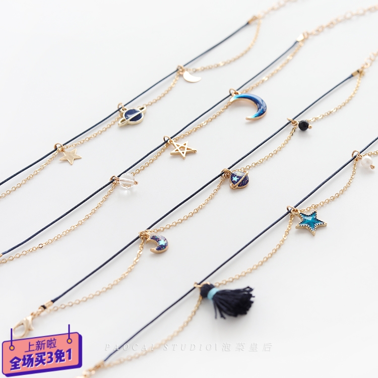 (Anklet)Star Moon planet (Anklet)Transparent beads Star Moon (Anklet)Pearl star tassel (Anklet) Black beads Moon Planet (bracelet) Please contact customer service to customize