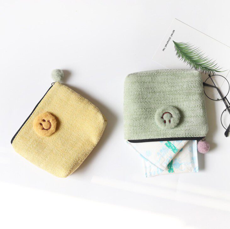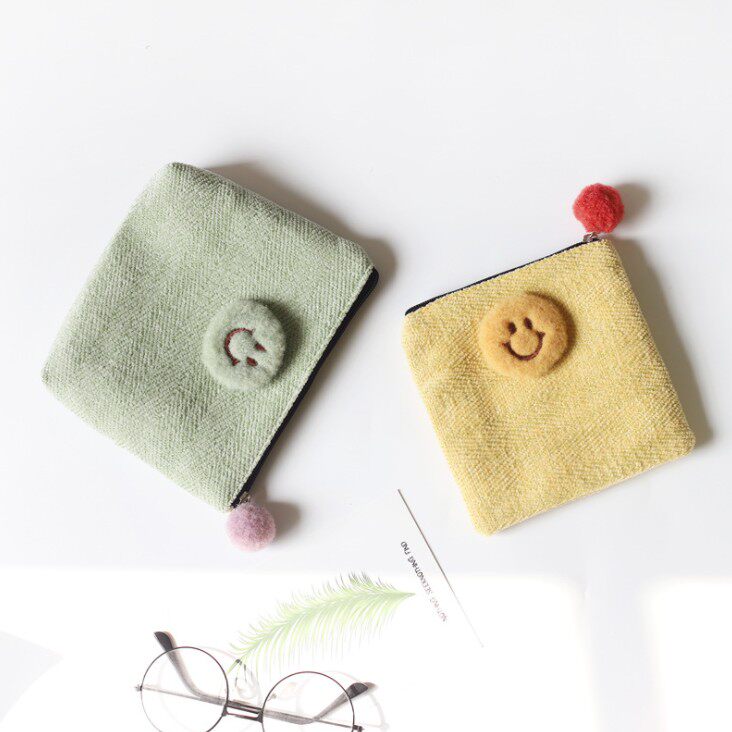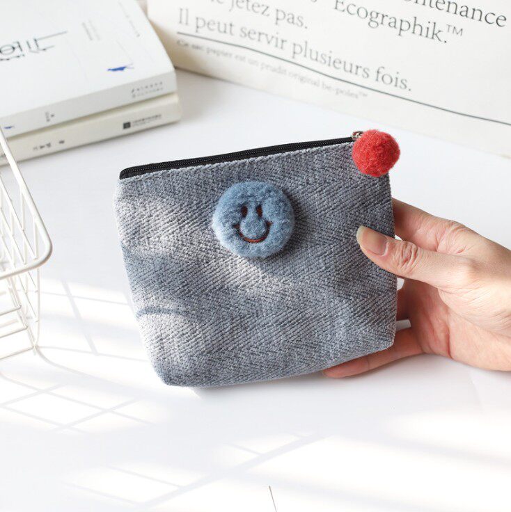Girls smiling face purse Korean version student coin bag key bag card bag small wallet plush sanitary napkin storage bag